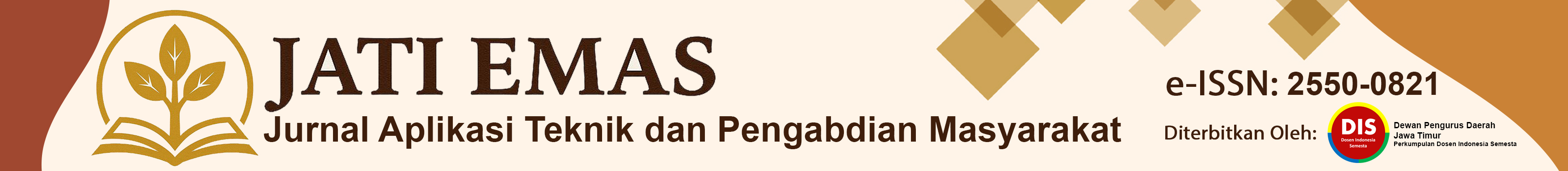 Jati Emas (Jurnal Aplikasi Teknik dan Pengabdian Masyarakat) is a scientific journal published by the Perkumpulan Dosen Indonesia Semesta (DIS), East Java Regional Board, with E-ISSN 2550-0821. The journal is published quarterly, in March, June, September, and December. Jati Emas aims to serve as a publication platform for scholarly works based on applied engineering and community service activities, particularly for early-career lecturers, students, and authors developing their scientific publication skills. The journal emphasizes author mentoring to ensure articles meet scientific standards, novelty, and publication ethics, and implements a published-in-ready system to accelerate the publication process. Its focus and scope include innovation and application of appropriate technologies, solving real community problems through scientific and engineering approaches, implementation of community service programs with direct impacts on community capacity building and welfare improvement, as well as the development of cross-disciplinary applied methods and practical solutions oriented toward social benefits.